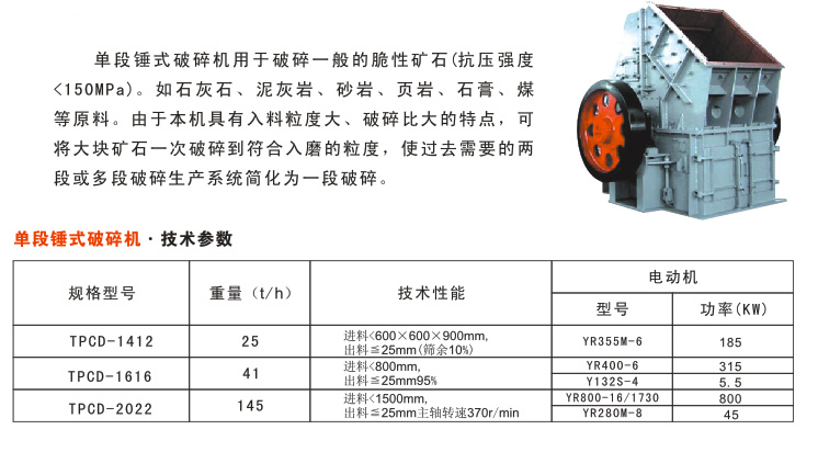 您現在的位置:首頁 ? 產品中心 ? 碎石機 ? 單段錘式破碎機